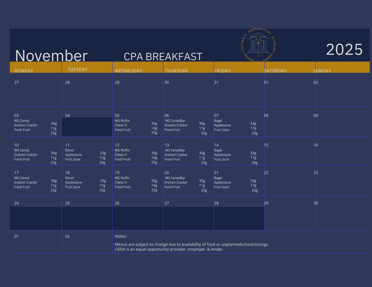 We’re excited to share the November breakfast and lunch menus for our students!